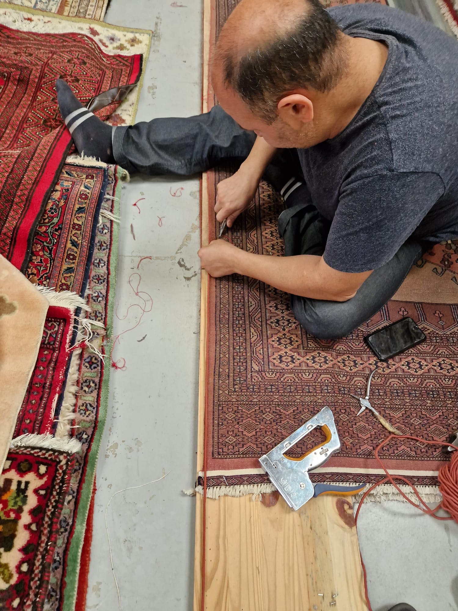 Notre atelier, situé au cœur de Paris, est spécialisé dans la restauration de tapis anciens, persans et orientaux. Chaque pièce est examinée avec précision afin d’identifier les zones fragiles ou endommagées. Nous réparons les trous, déchirures, franges abîmées et usures, en respectant les techniques de tissage et les nuances de couleurs d’origine. Ce travail méticuleux permet de préserver la valeur artistique et patrimoniale de vos tapis, qu’ils soient anciens ou modernes.