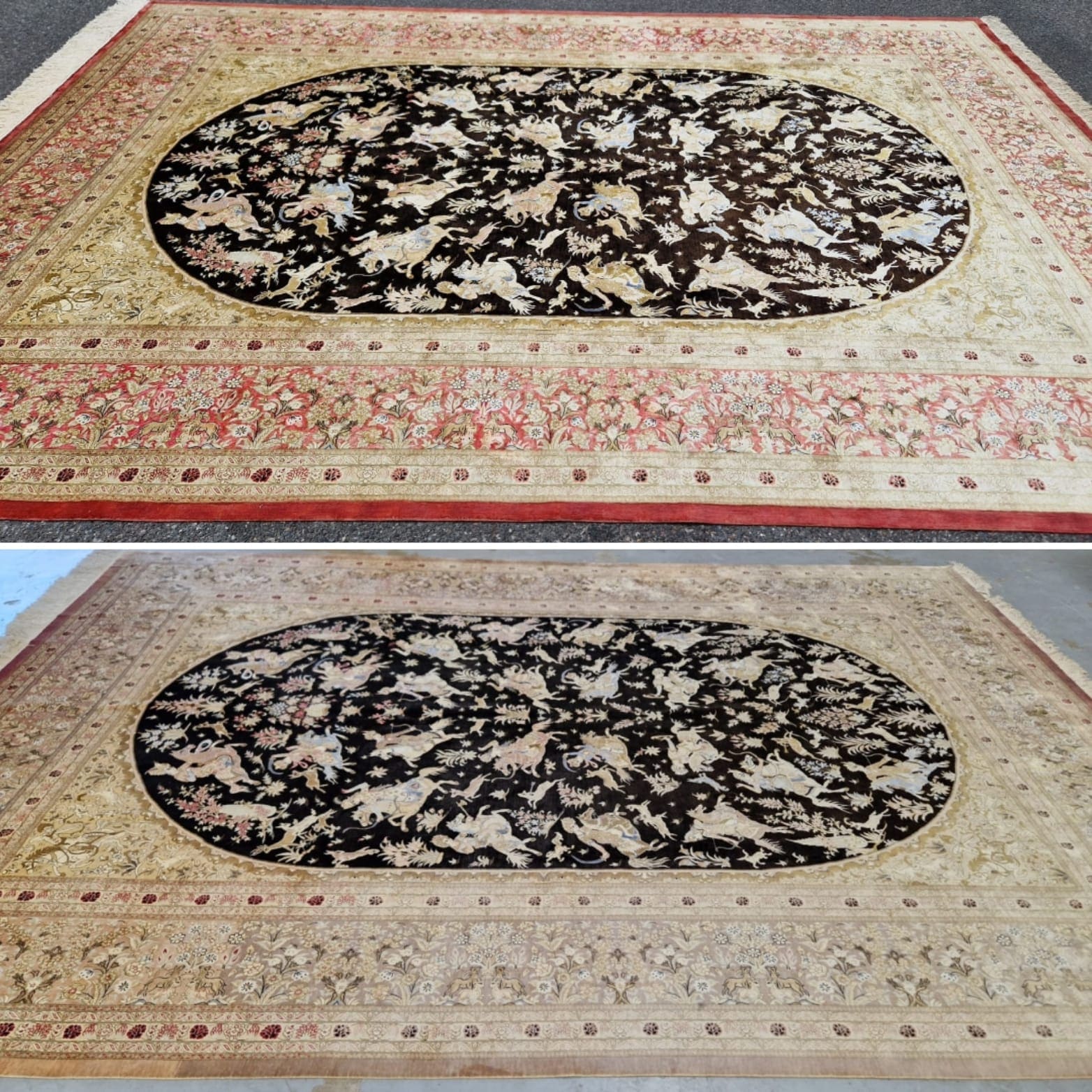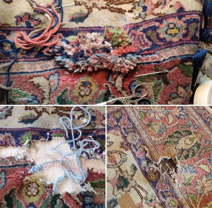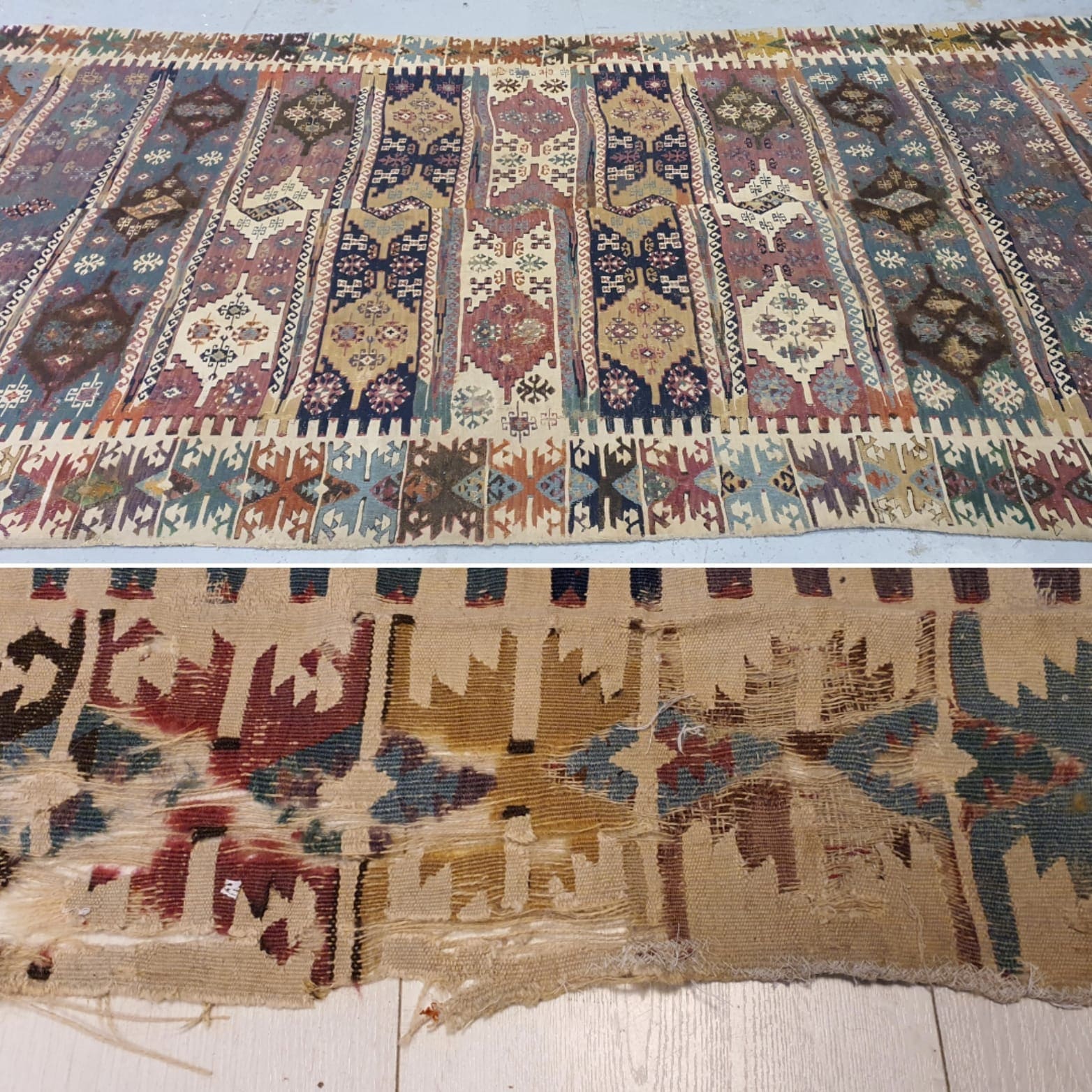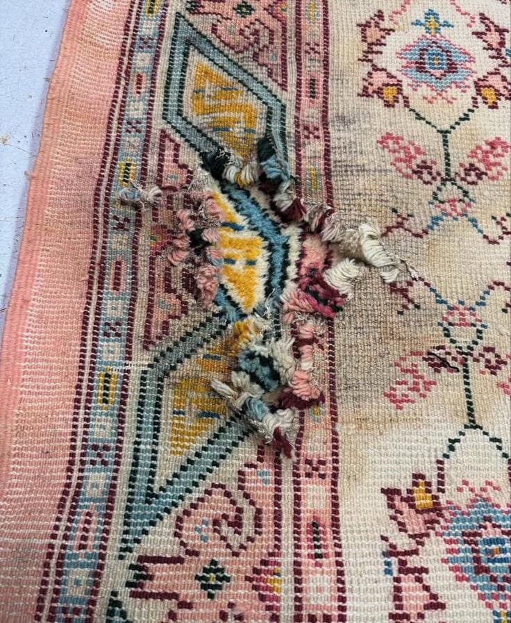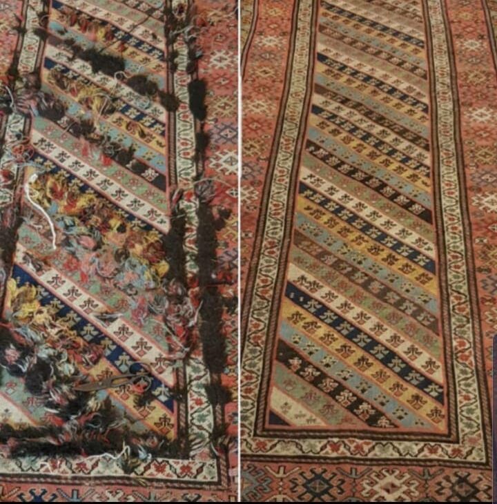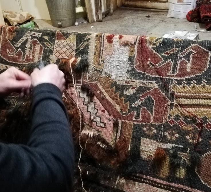Nos artisans utilisent des techniques traditionnelles de restauration à la main : tissage, recoloration, renforcement des fibres et reprise des motifs. Chaque intervention vise à préserver la valeur esthétique et patrimoniale du tapis.